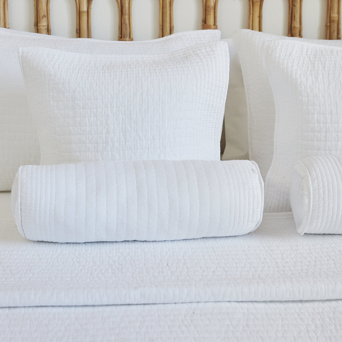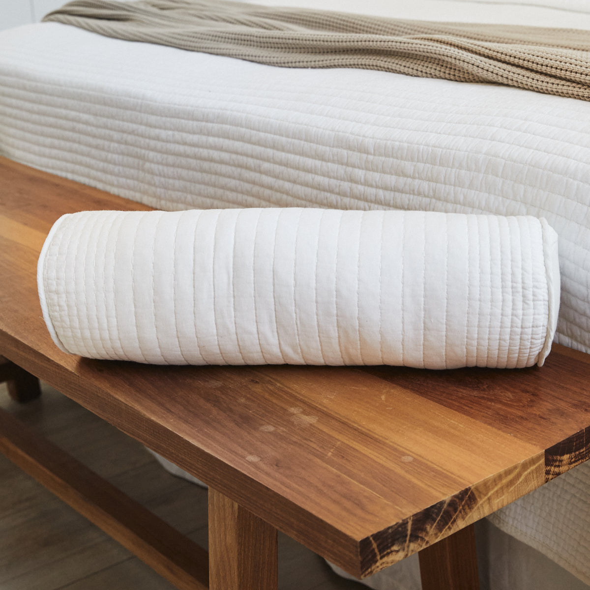 Almohadón tipo caramelo confeccionado en tela matelassé, con funda de 90% algodón y 10% poliéster. Aporta textura y un toque decorativo perfecto para complementar el cubrecama Lugano. Liviano, suave y versátil, ideal para sumar calidez al dormitorio.