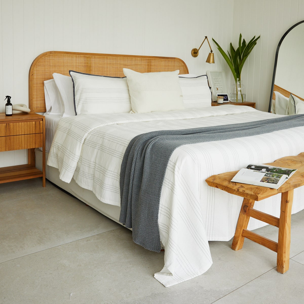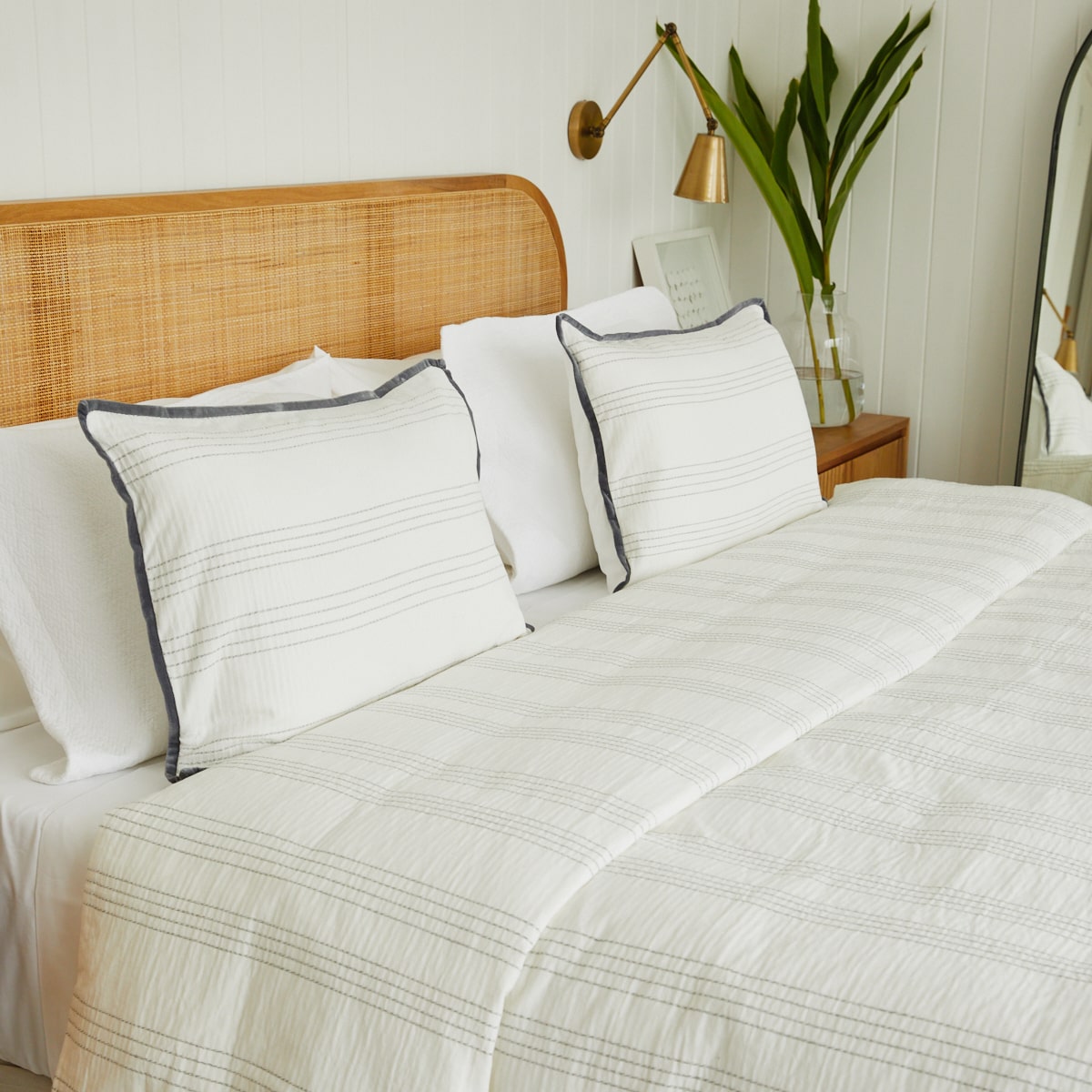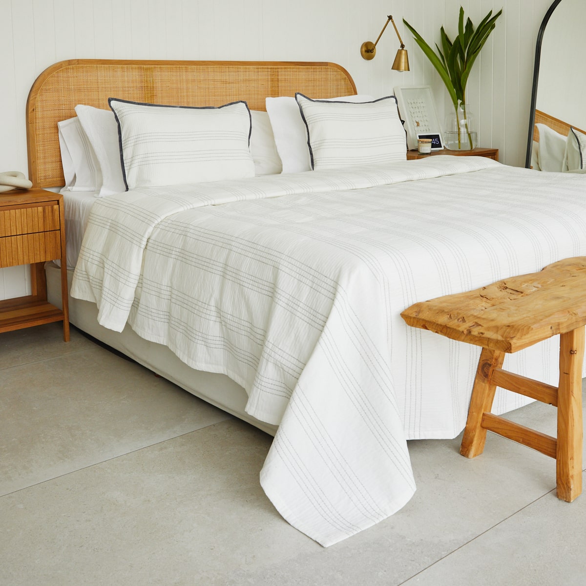 De textura suave y delicada presenta un tejido sutil relieve en rayas, que aporta elegancia y un toque artesanal. Liviana y versátil, es perfecta para usar todo el año