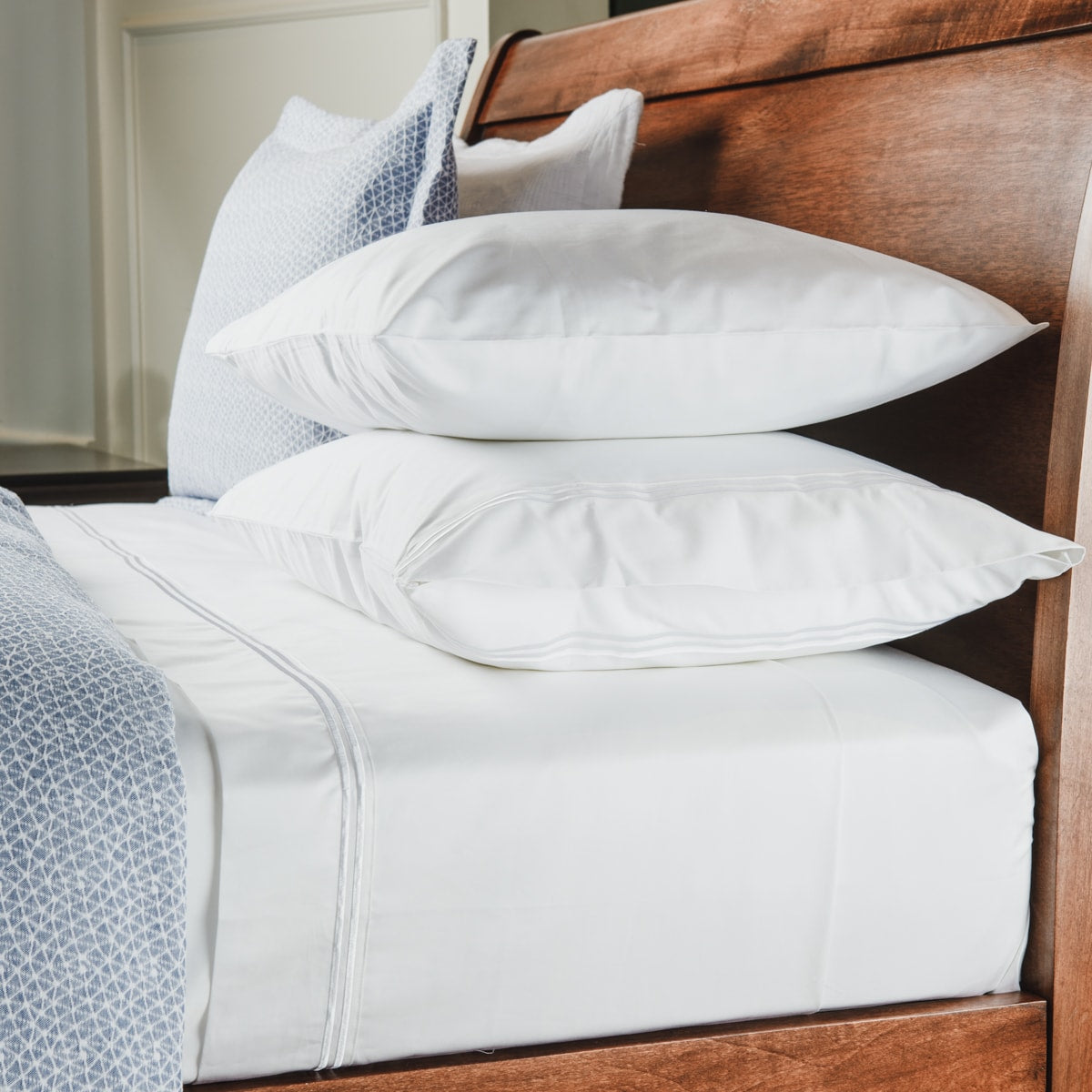 Sábana de 800 hilos, confeccionada en algodón egipcio con detalle de 2 festones (bordado de hilo al tono). Vienen 3 o 4 piezas según el tamaño elegido: Sábana ajustable, Sábana plana y una o dos fundas de almohada.