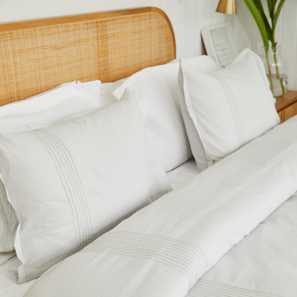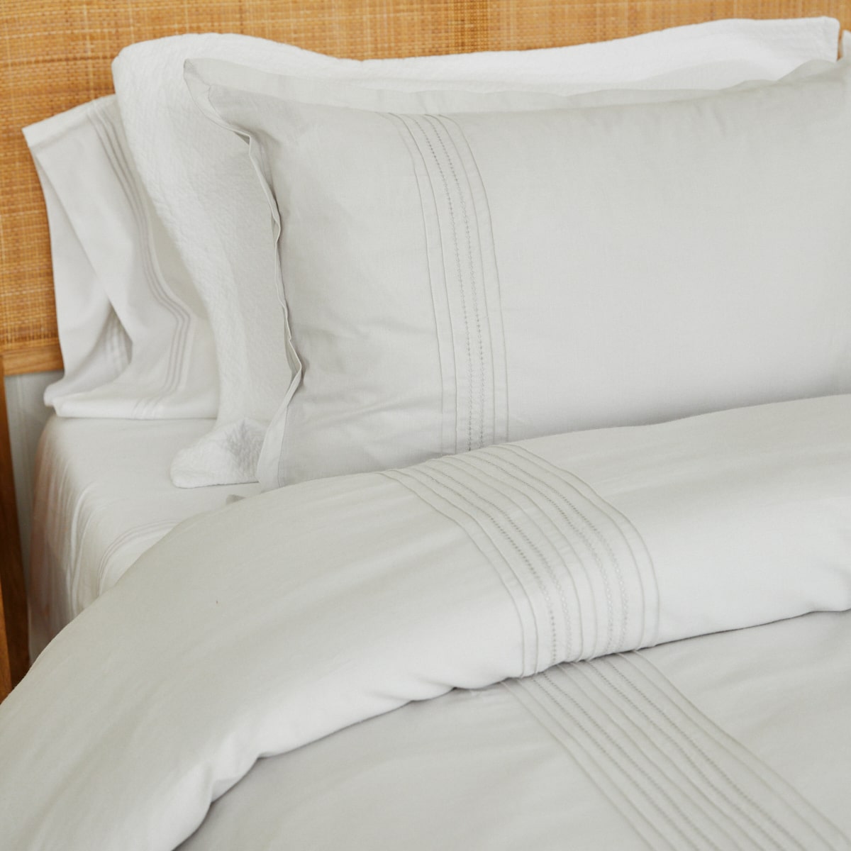 El set se compone de 2 o 3 piezas según el tamaño: funda de edredón + una o dos fundas de almohadas decorativas.