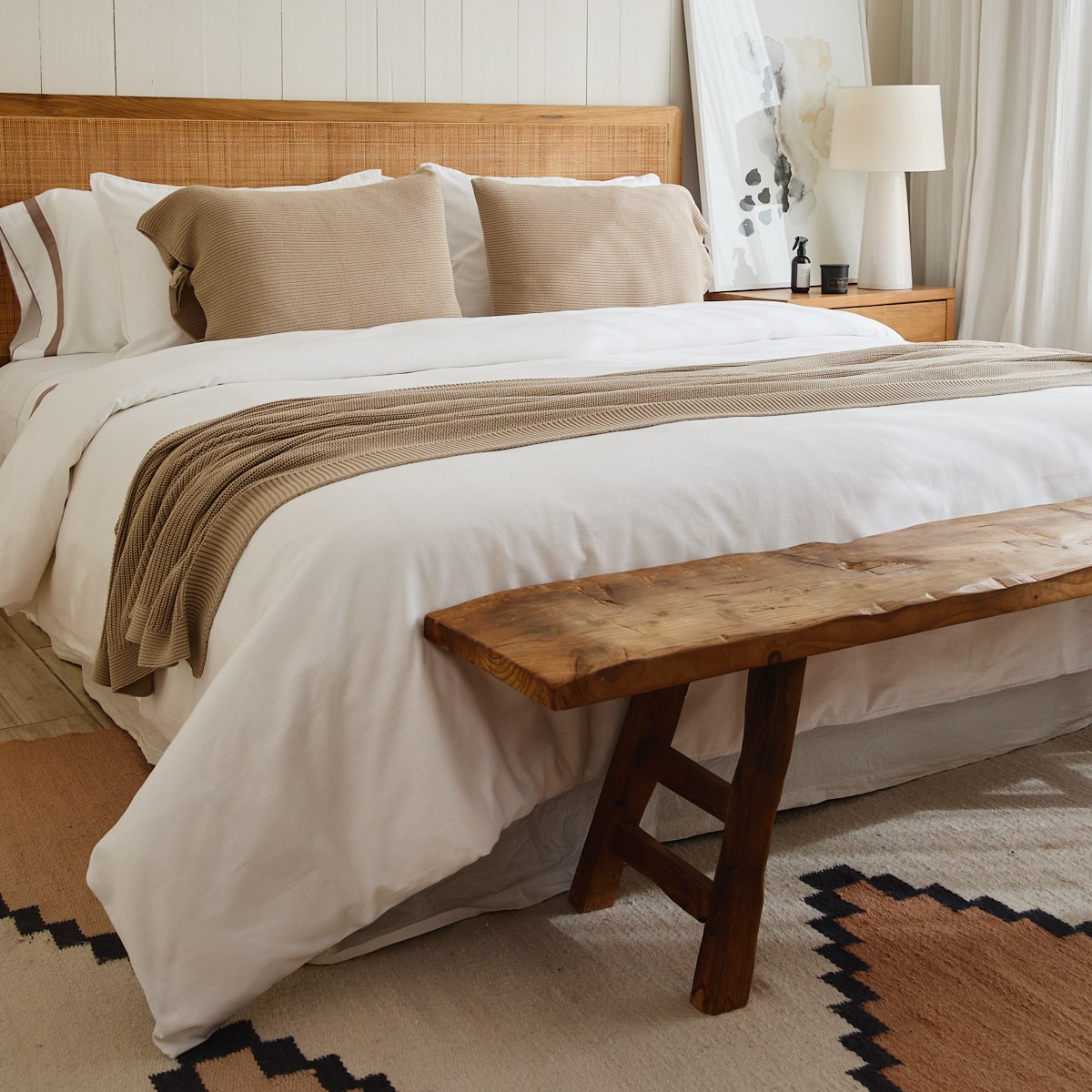 Esta funda de edredón presenta un diseño rústico y una textura suave tipo lino, ideal para sumar estilo natural al dormitorio.