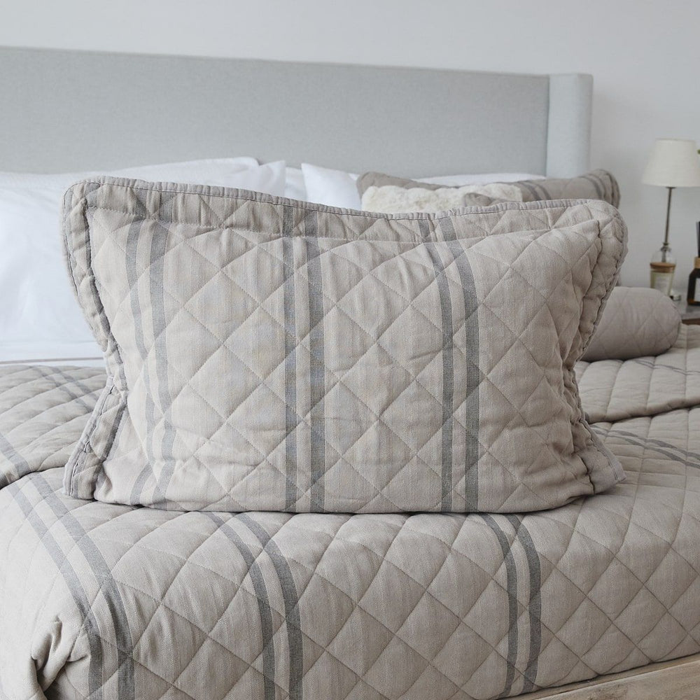 Su textura es suave pero con cuerpo, con costuras en cuadros y diseño de rayas cruzadas que aportan un estilo clásico y elegante.