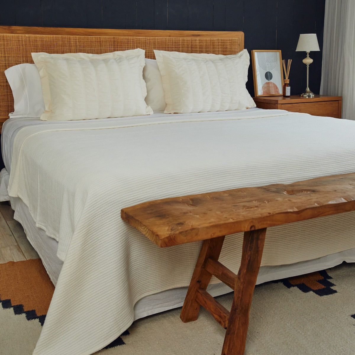 Perfecta como pie de cama o como manta liviana para entretiempo. Atemporal, versátil y con la calidad de las fibras naturales.