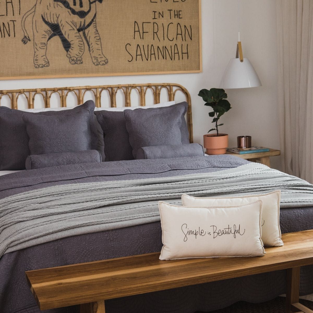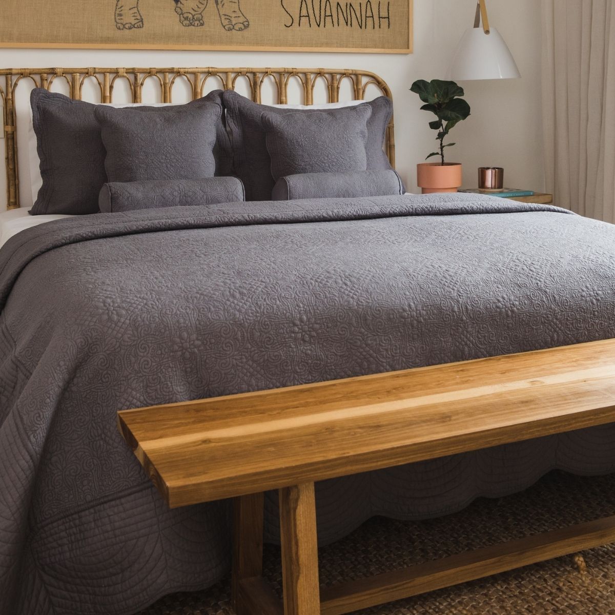 Cubrecama de diseño exclusivo, confeccionado en una suave mezcla de 90% algodón con relleno de 10% poliéster.