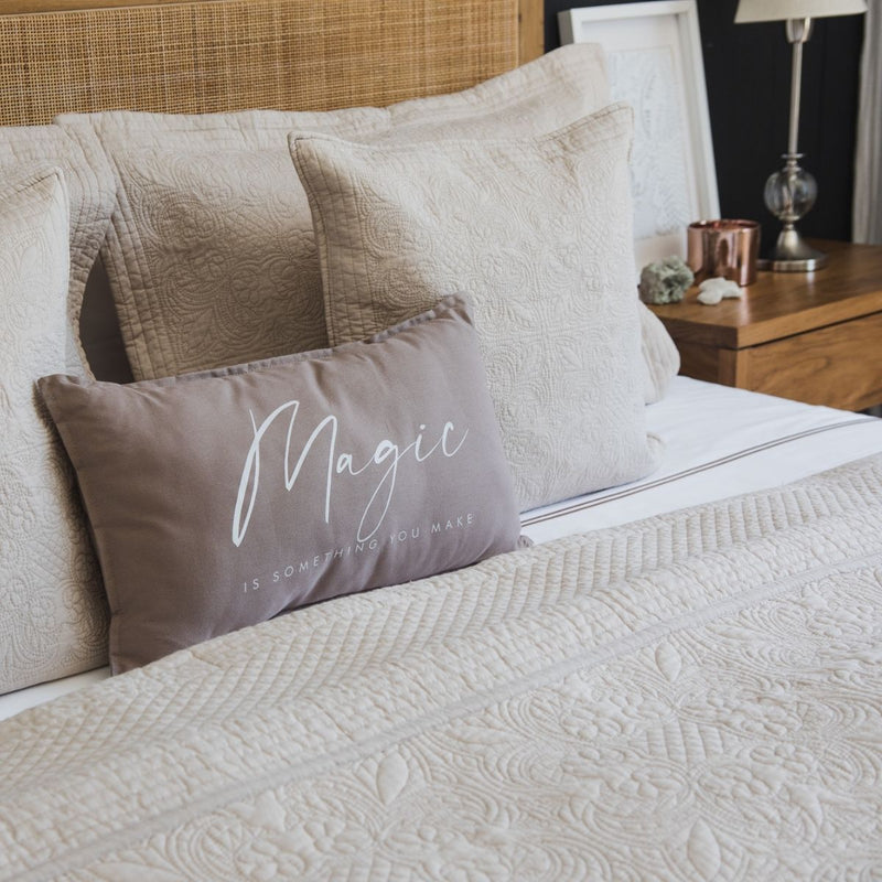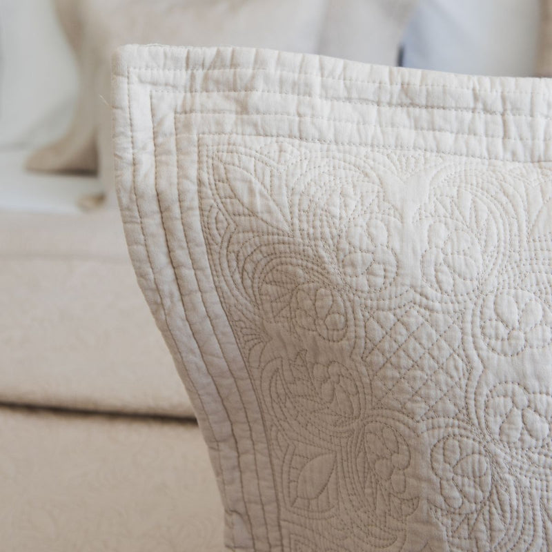 Funda de almohadón para relleno confeccionada en tela 100% algodón, con textura suave y diseño delicado. Es el complemento ideal para combinar con la línea de cama Amalfi.