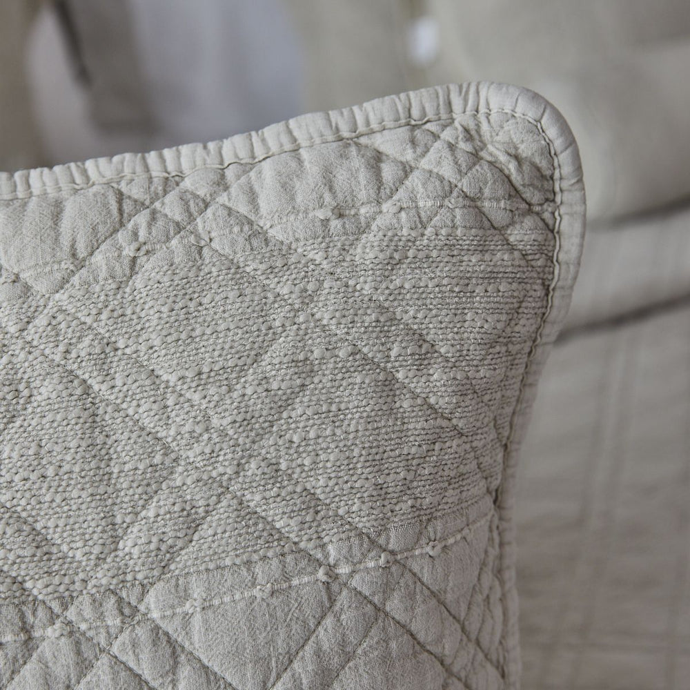 Funda de almohadón lavable para relleno, confeccionada en tela 100% algodón. Su diseño aporta textura y un toque decorativo que complementa perfectamente el cubrecama Manchester. Ideal para sumar calidez y estilo al dormitorio.